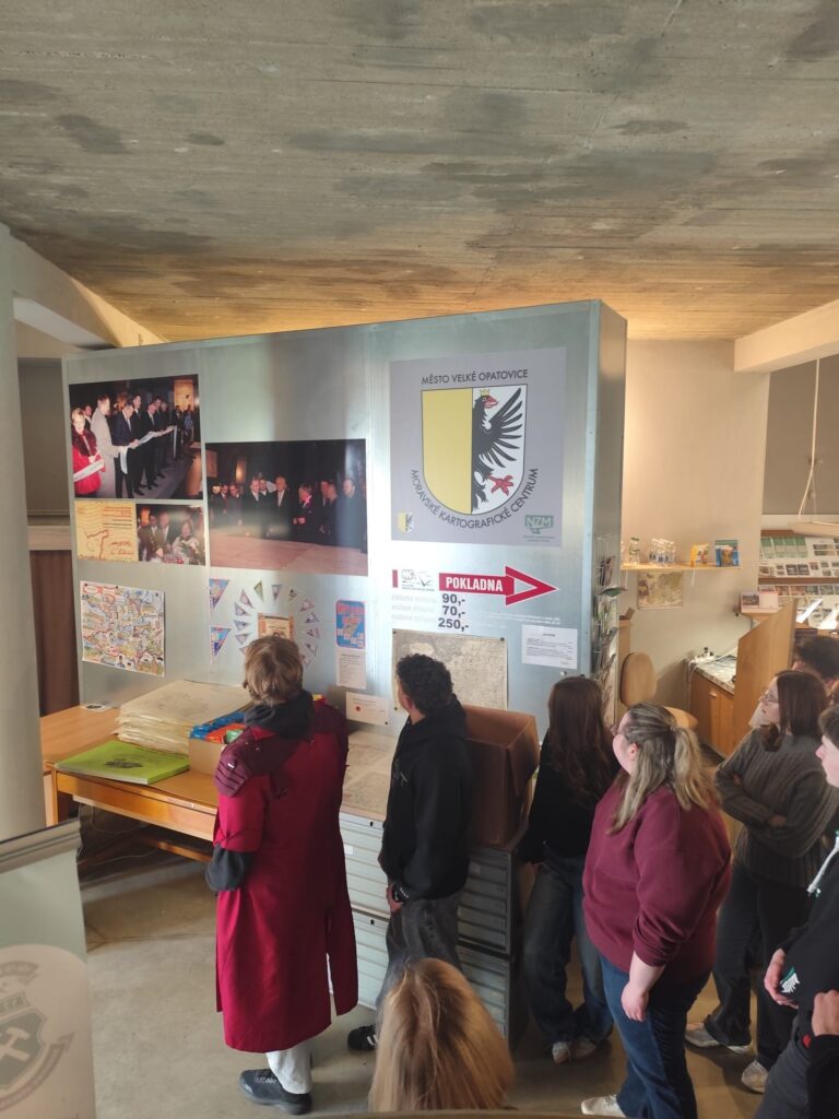 V pátek se žáci všech třetích ročníků zúčastnili exkurze do Velkých Opatovic. Po příjezdu na místo se třídy rozdělily na dvě skupiny. První skupina absolvovala s nadšeným průvodcem prohlídku kartografického muzea, kde si prohlédla historické mapy a dozvěděla se zajímavosti o jejich vzniku. Zaujala je například práce Jana Ámose Komenského, který se též podílel na tvorbě map – některé jeho geografické odhady byly překvapivě přesné, jinde se však tehdejší poznání lišilo od dnešních údajů.