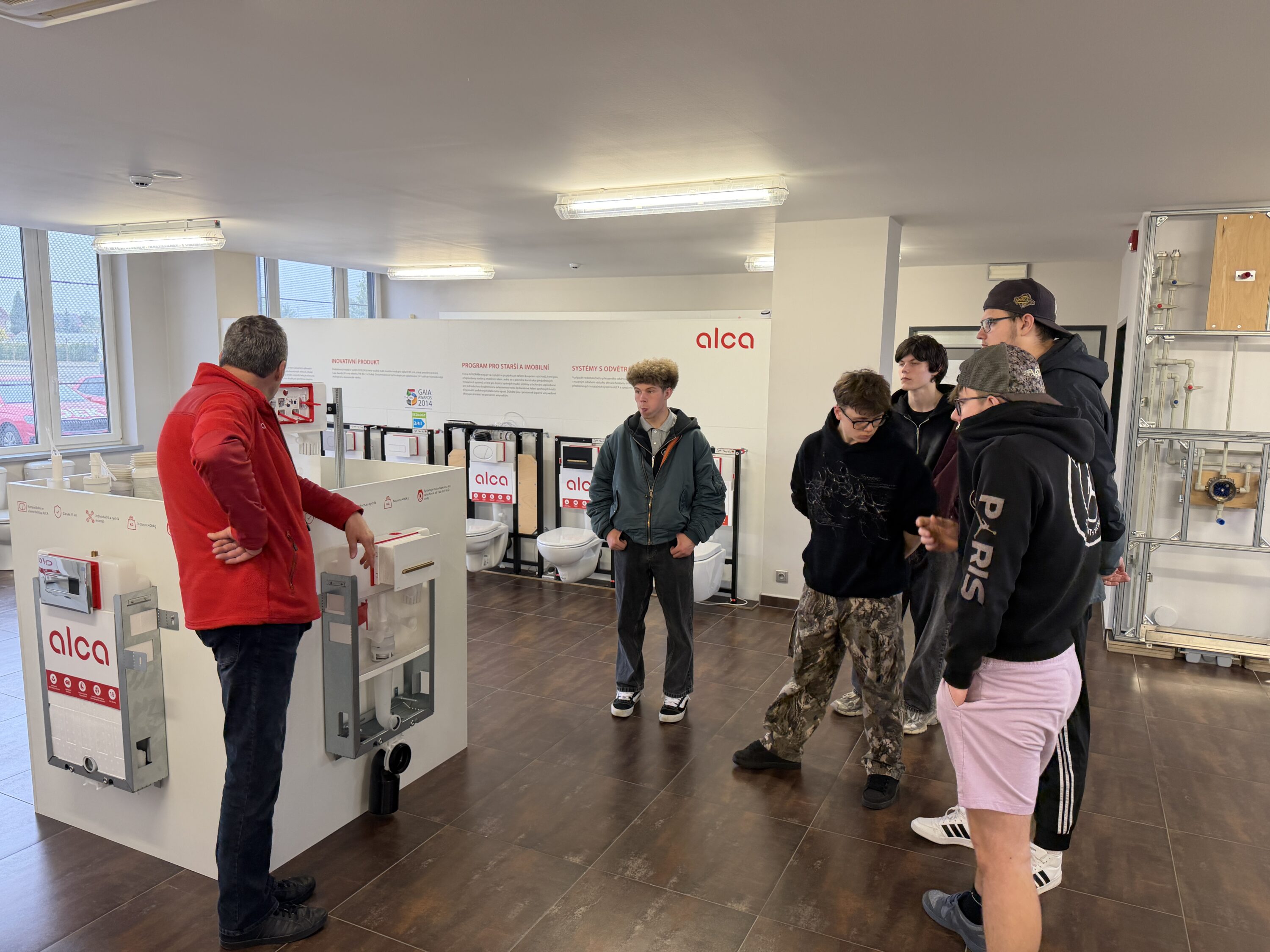 Studenti 2. ročníku oboru Instalatér vyrazili 15. 4. 2026 na odbornou exkurzi do břeclavské společnosti Alcadrain. Prošli si výrobu, seznámili se s nejnovějšími systémy a zjistili, jak se rodí špičková sanitární technika. Skvělá zkušenost, která nás posunula zase o krok blíže k řemeslu.